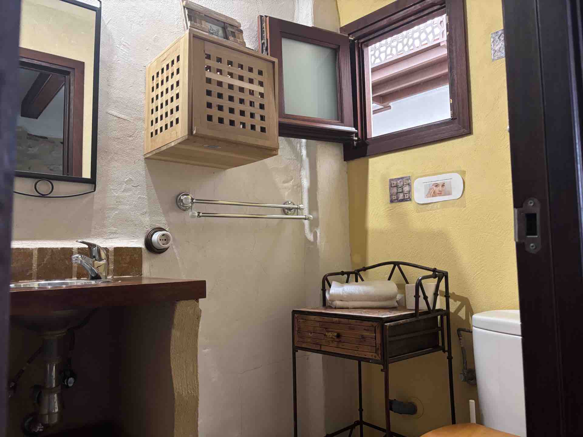 Step into the medieval charm of our No. 3 studio apartment, located on the second floor with beautiful walls built entirely of Tosca stone. Thoughtfully renovated, it offers a warm and authentic atmosphere overlooking the picturesque village streets. The studio includes a private bathroom, a practical kitchenette, and a comfortable queen bed, along with modern essentials such as a washing machine, gas stove, kettle, coffee maker, and toaster. With about 40 m² of space, it’s a cozy retreat in the heart of Jávea’s historic center.